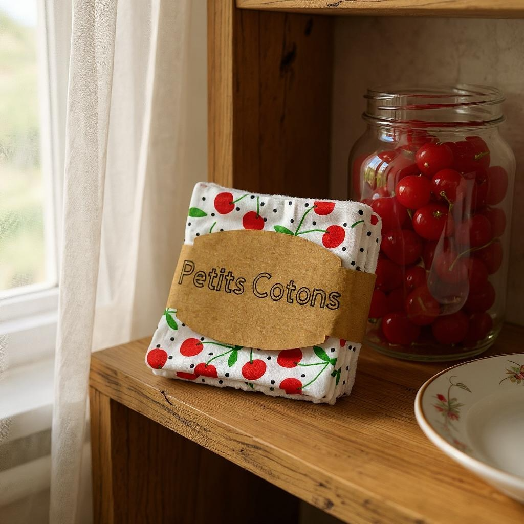 Lot de 3 cotons réutilisables fabriqués à la main.