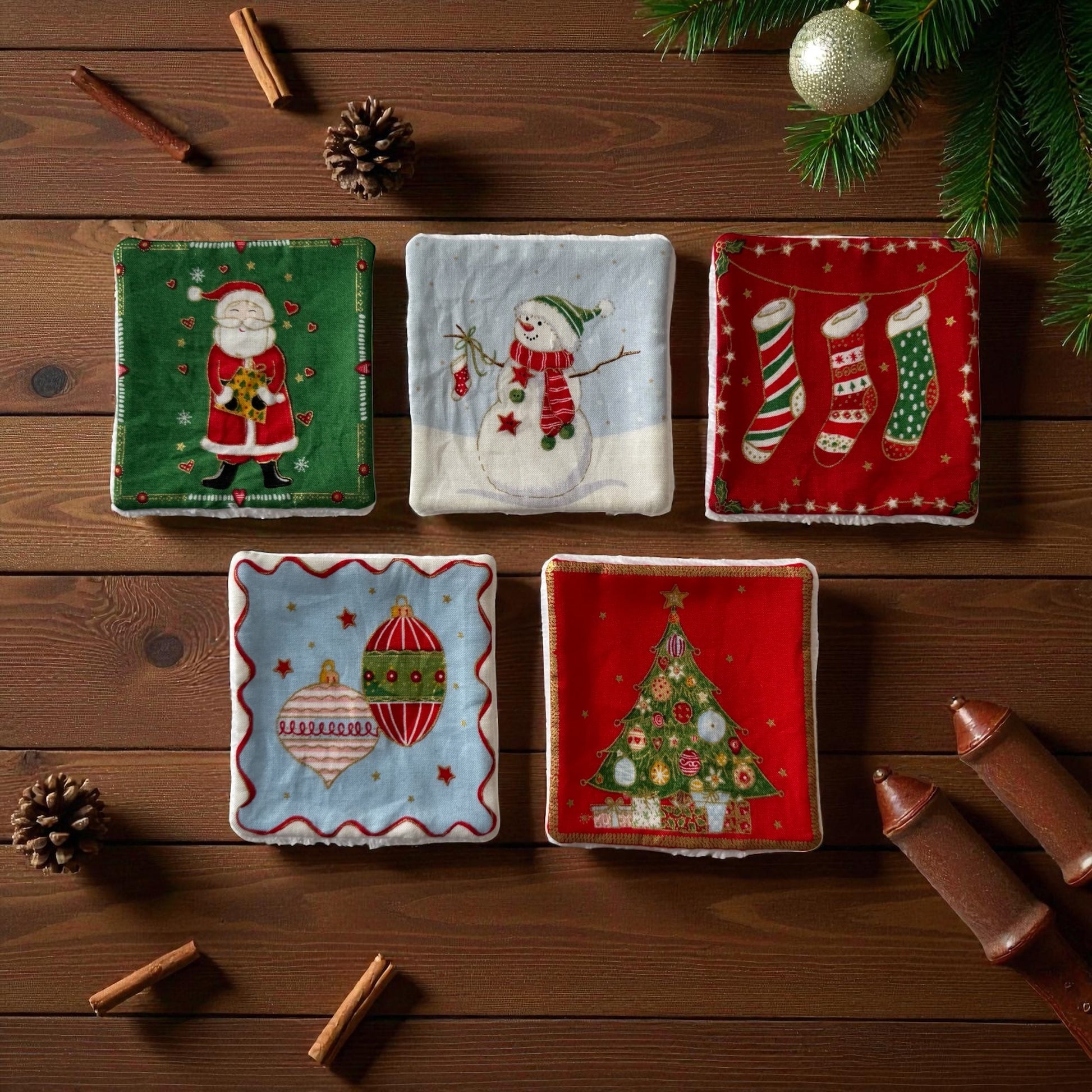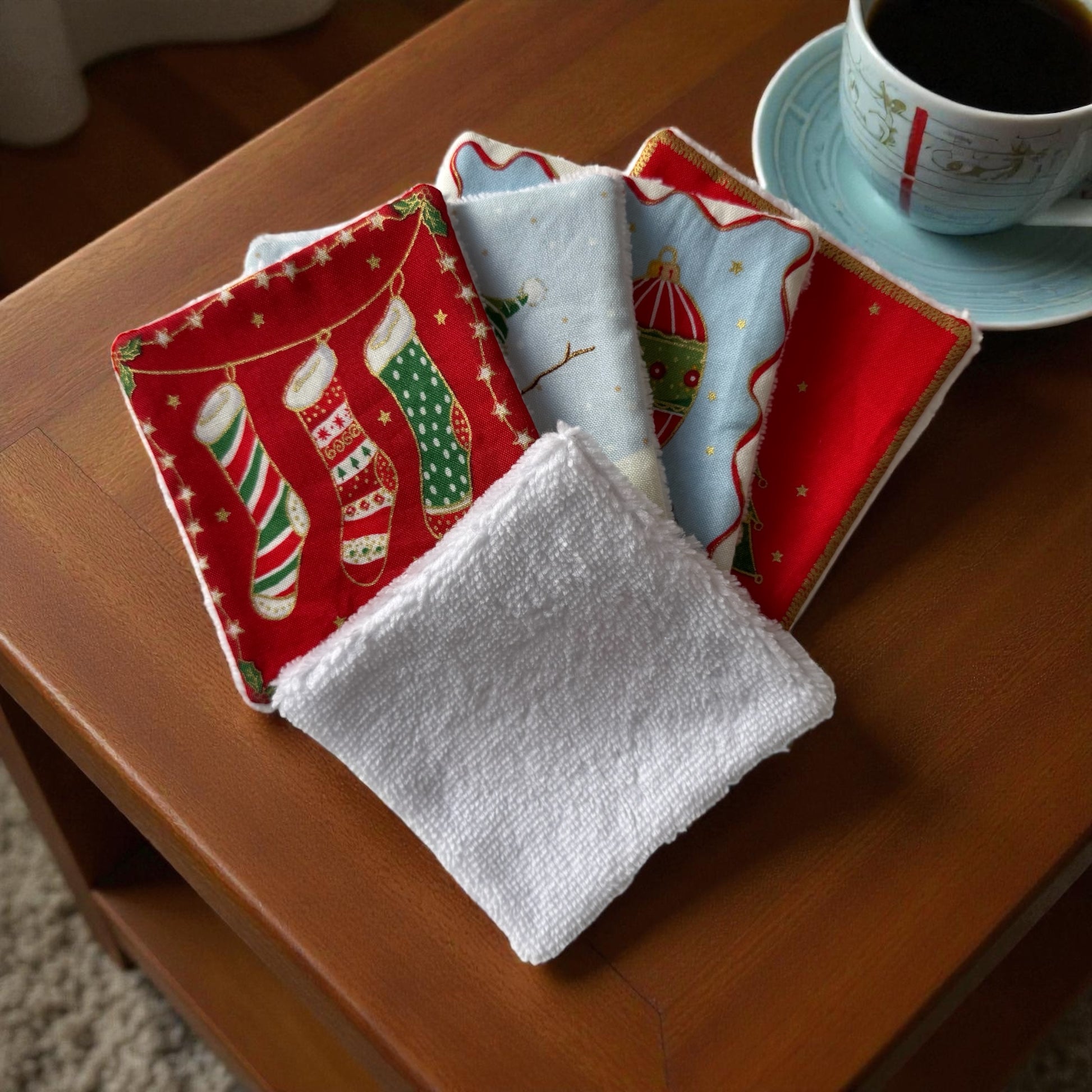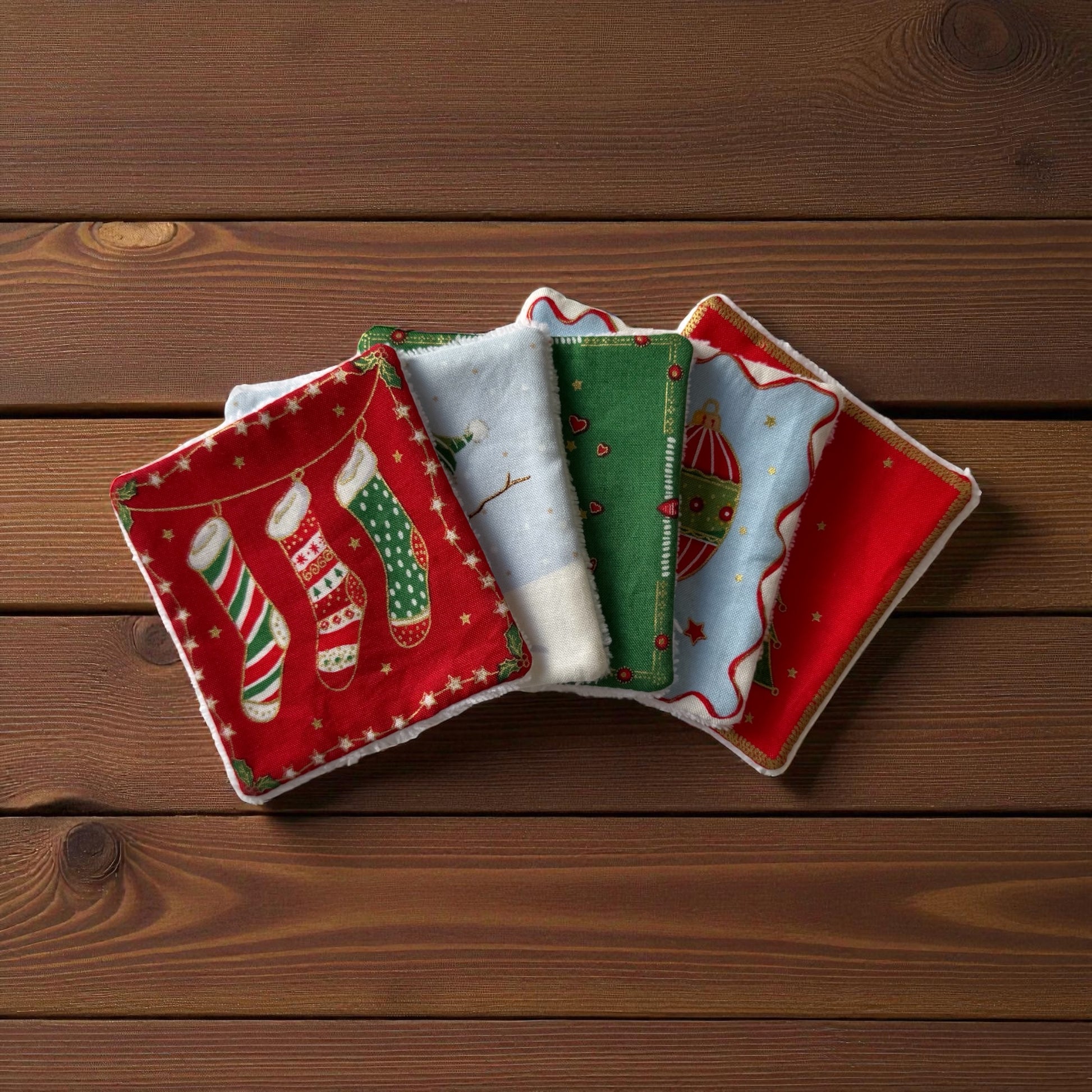 Lot de 5 lingettes réutilisables fabriqués à la main.