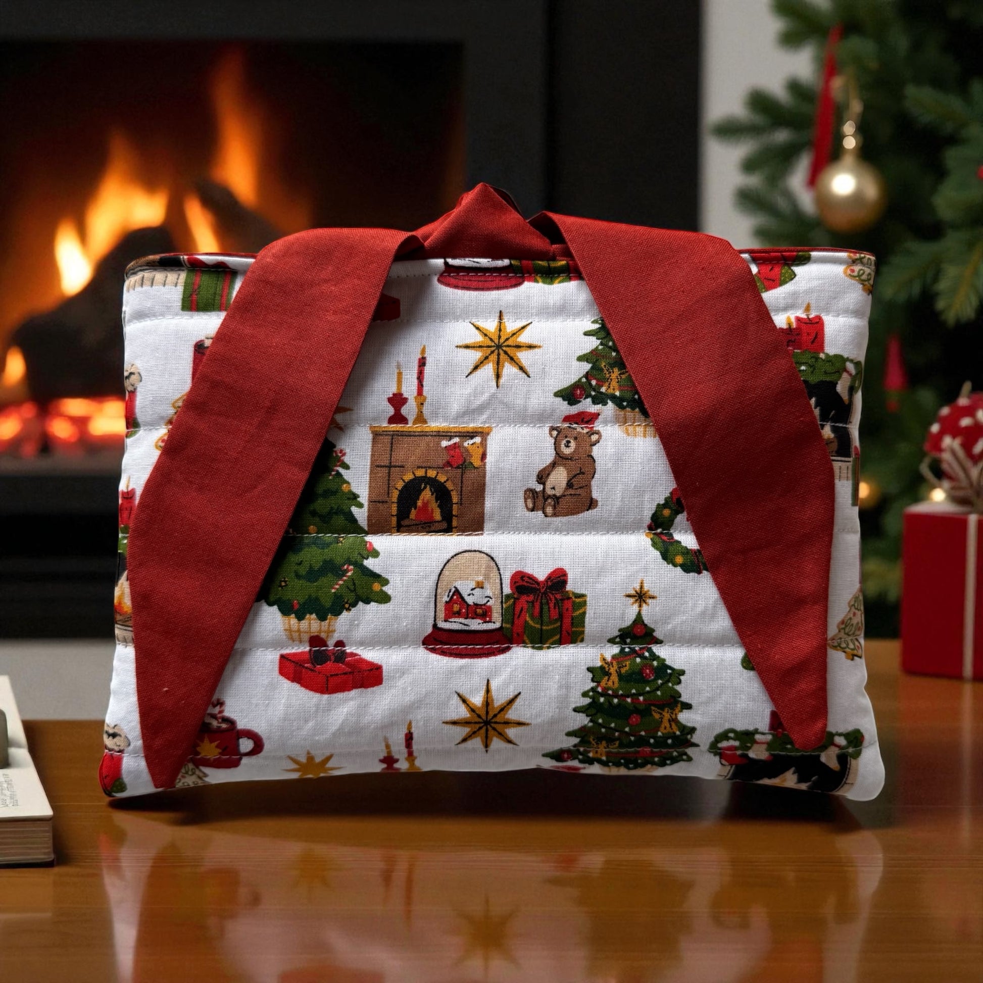 •Coloris: Coton imprimé Noël / doublure et lanières assorties Rouille