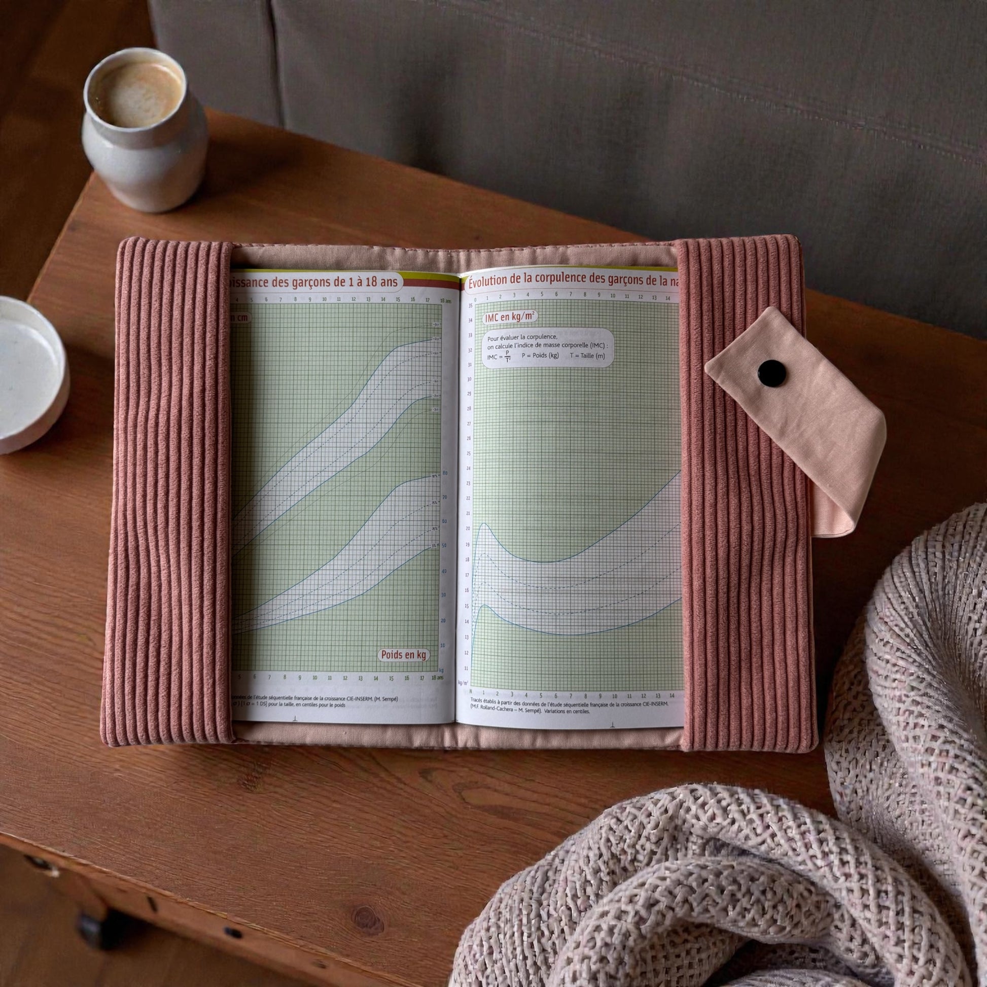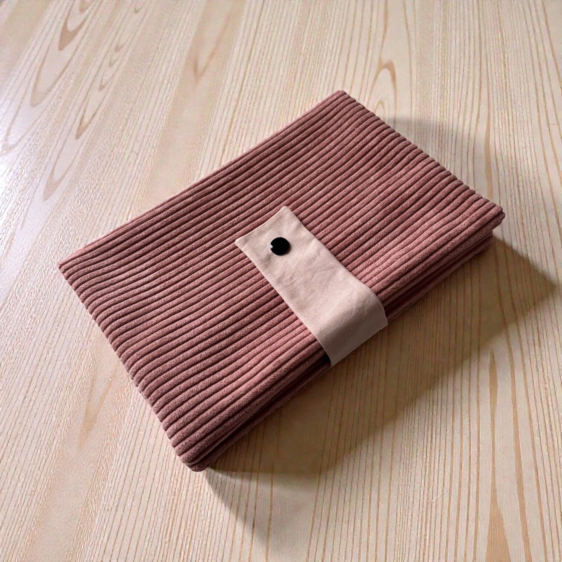 Ravissant modèle en velours côtelé rose et doublure coton rose pâle, fermeture rabat avec bouton pression de couleur noir.